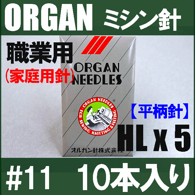 【メール便可】オルガン針家庭用ミシン針(職業用ミシン針)【HLx5】#11 平柄針(薄〜中厚物用 / 11番手)【10本入り】HL×5 ORGAN NEEDLES HLX5HL*5【RCP】11号