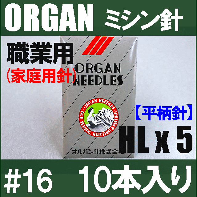 ORGAN NEEDLES 職業用ミシン針(平柄針) #16(16番手) 10本入り ブラザー職業用ミシン・JUKI職業用ミシン・ジャノメ職業用ミシン・シンガー職業用ミシン Babylock職業用ミシン推奨の【HLx5】10本入りパックです。