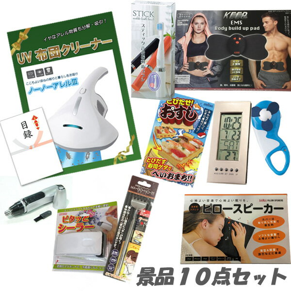 二次会 景品 UV布団クリーナー ボディパッド デジタルクロック ピロースピーカー 他 人気景品10点セット パネル 目録 結婚式 2次会 ビンゴ 景品 おもしろ