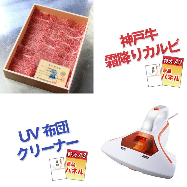 ※ディズニーペアチケット・神戸牛霜降りカルビ肉・UV布団クリーナー・ネスカフェバリスタは、A3景品パネルと目録でお届けします。