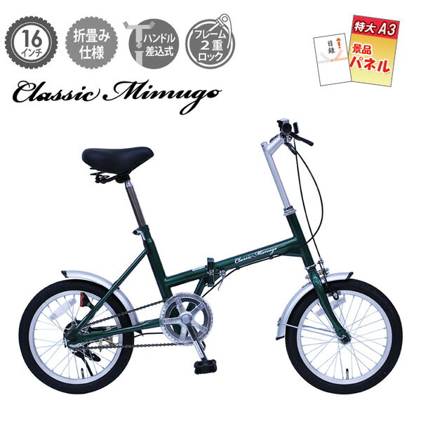 (1)折りたたみ自転車(景品パネル+目録でお届け) 軽量&コンパクトサイズで持ち運びや収納に便利!もらって嬉しい人気の16インチ折り畳み式自転車。