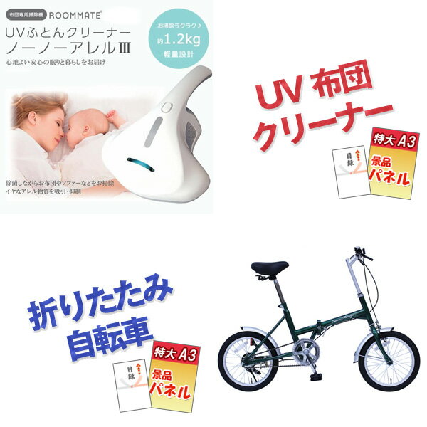 ※神戸牛・UV布団クリーナー・折りたたみ自転車はA3景品パネルと目録でお届けします。