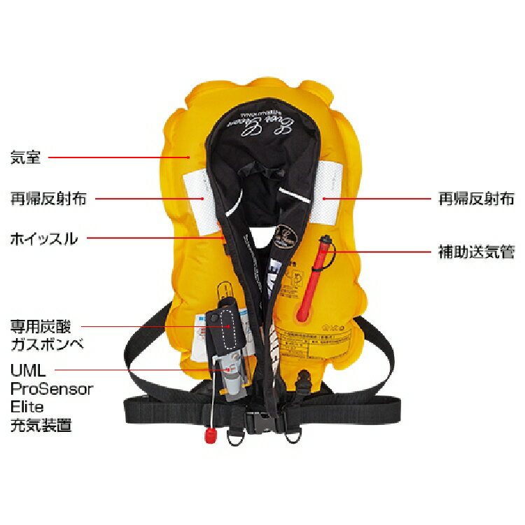 ■ 充気装置 & 確認ウィンドウ 充気装置 UML ProSensor Elite が水を感知して自動的にPFDを膨脹させます。