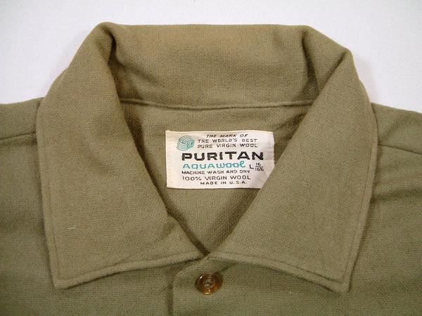 PURITAN 長袖無地ウールシャツ ビンテージ MADE IN USA {カラー} カーキグリーン {サイズ表示} Lサイズ {素材表記} ウール100% {ヨゴレ} 特にありません {ヤブレ} 胸ポケットの両角に小さなヤブレありますがほかは良好です {使用感} 多少ありますが比較的良好です {コメント} アメリカ古着 PURITAN 長袖無地ウールシャツ ビンテージ 胸刺繍入り 減少傾向にあるUSA製 古着ならではの良い味がでています 専門業者によるドライクリーニング済み 肩幅 約44cm(肩〜肩) 身幅 約56cm(脇〜脇) 着丈 約65cm(襟〜裾 襟部分除く) 袖丈 約59cm(肩〜袖)