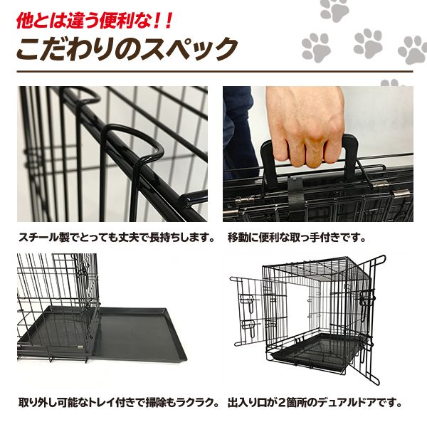 【犬用ケージ】PROスチールケージ 3L Wドア(660mm×1050mm×H980mm)【犬 ケージ 檻】【折り畳み】【組み立てかんたん】【売れ筋商品】【プロユース商品】